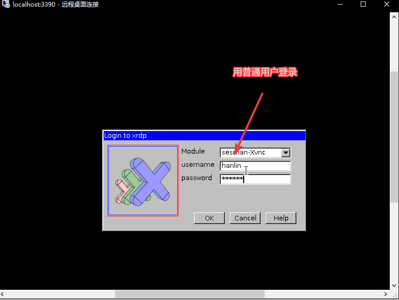 如果使用了 xfce4,可以在弹出的窗口中使用如下命令激活 xfce4: